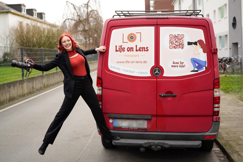My name is Jessi and I’m a professional people and watersport photographer. If you saw my van on the road, I might be traveling to the next awesome photoshooting-location right now. If you saw my van standing still somewhere, I might have been so overwhelmed by all those handsome people infront of my camera, that I took a nap…